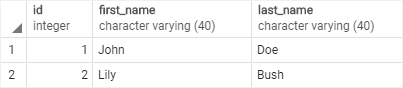 VALUES ('Lily', 'Bush');Fourth, examine the contents of the employees table: